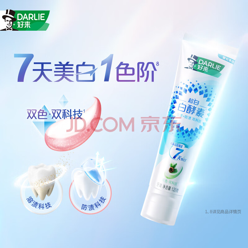 商品相册:好来(DARLIE)(原黑人)白酵素雪松薄荷牙膏120g 活酵溶渍焕白清新新旧包装随机第