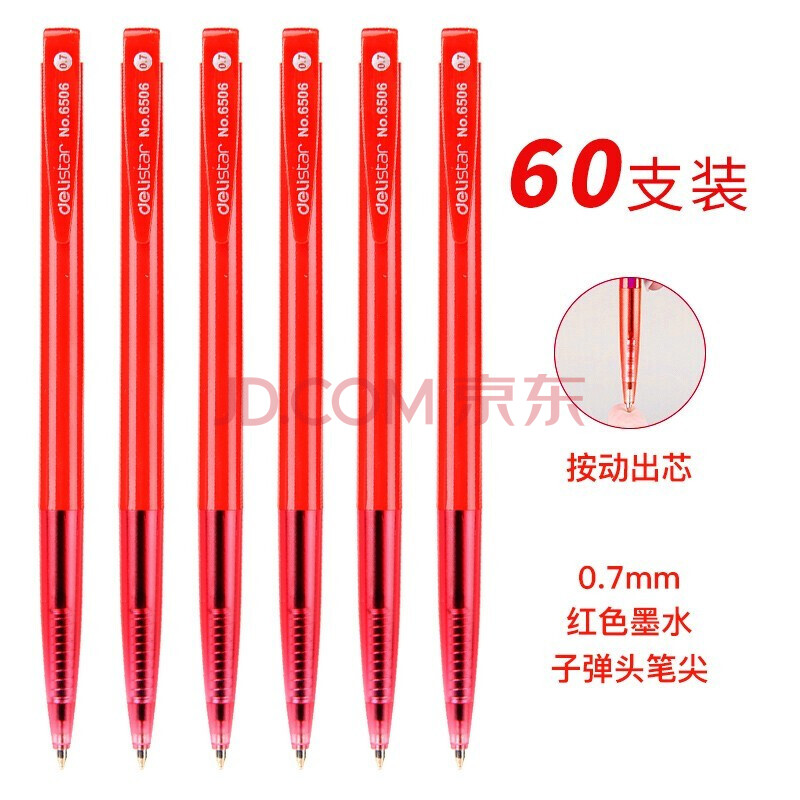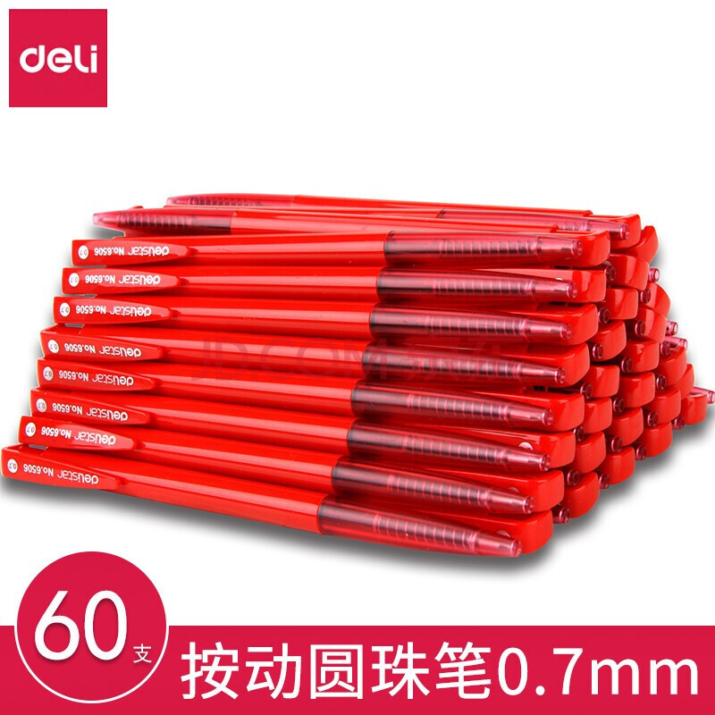 商品相册:【开学必备】得力 6506 圆珠笔 0.7mm 60支/盒 红色 邮储专享第
