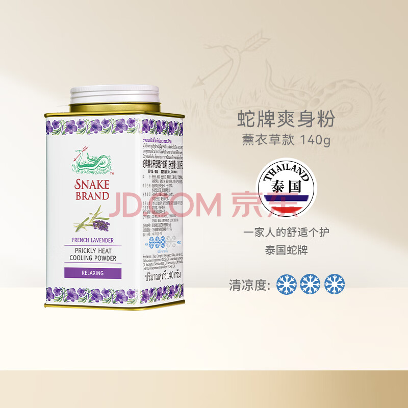 商品相册:蛇牌(SNAKE BRAND)薰衣草舒缓护肤粉140g 泰国蛇牌爽身粉 蛇粉 痱子粉 泰国原装进口第