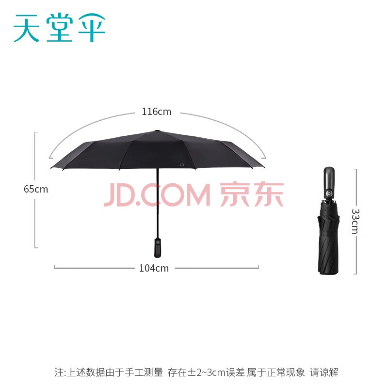 商品相册:天堂 全自动晴雨伞三折 10骨加固一键开收易甩干简约 黑色第