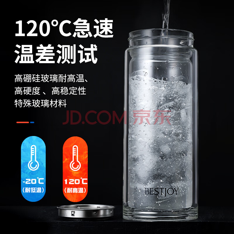 商品相册:富光拾喜玻璃杯双层隔热茶杯商务男女士办公杯子大容量水杯1000ml本色第