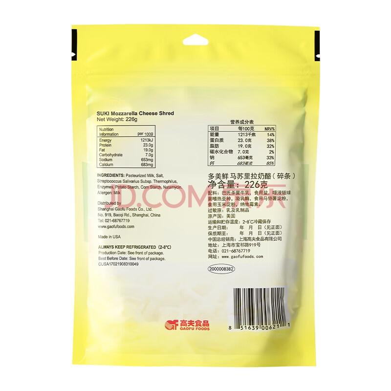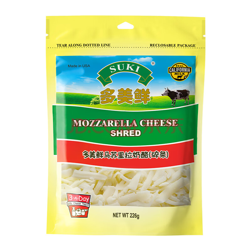 商品相册:多美鲜(SUKI)美国进口 马苏里拉芝士碎226g 冷藏即食 烘焙原料 披萨 焗饭第