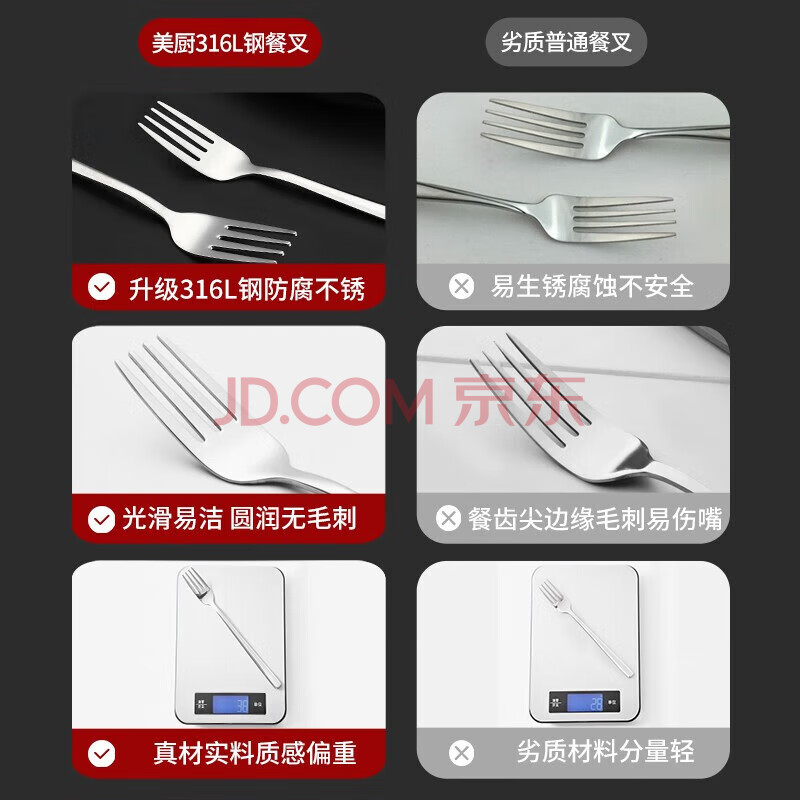 商品相册:美厨(maxcook)316L不锈钢叉子 餐叉水果叉餐具套装 2件套 MCGC8482第