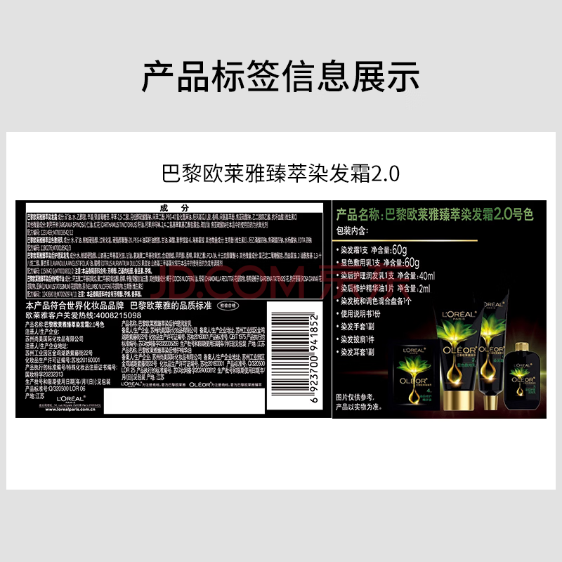 商品相册:欧莱雅臻萃精油染染发剂 男女遮盖白发 自己在家染发膏2.0冬石暮黑第