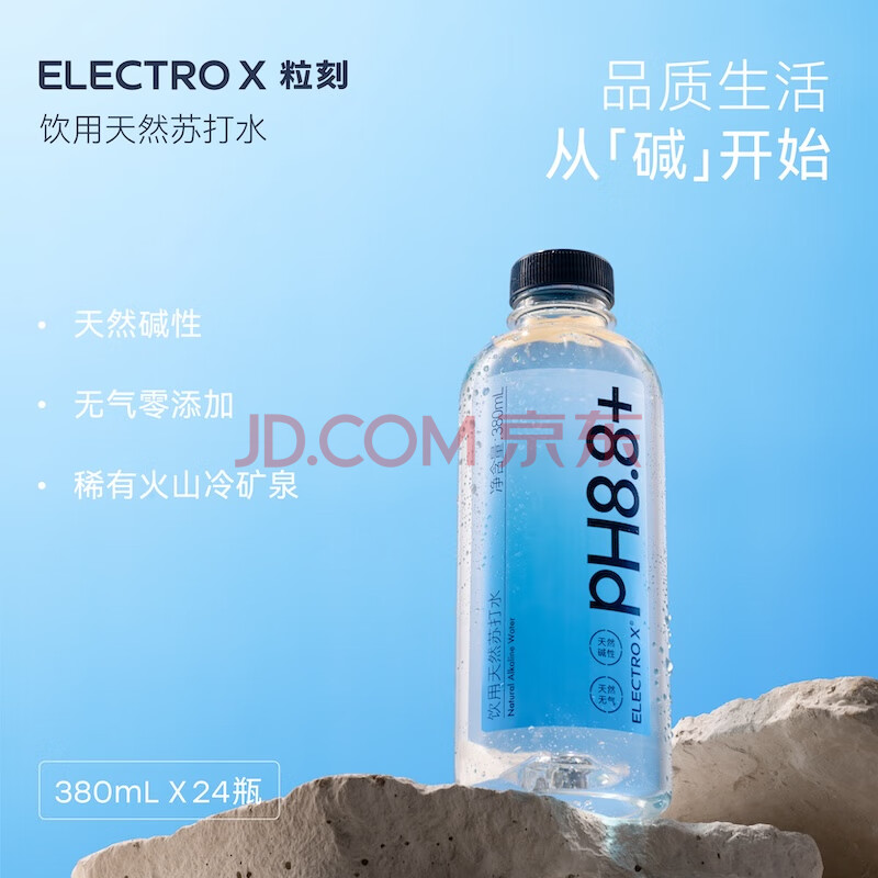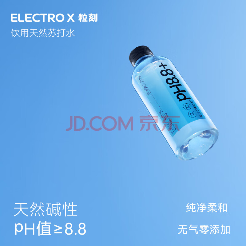 商品相册:粒刻(ELECTRO X)【新老包装随机发货】天然苏打水pH8.8弱碱性0糖无气380ML*24瓶第