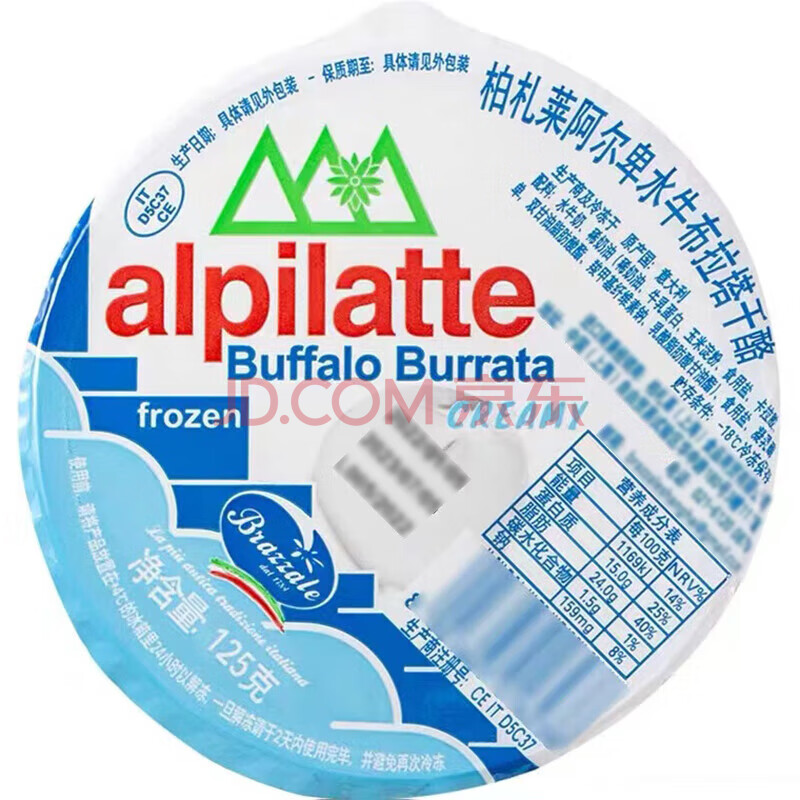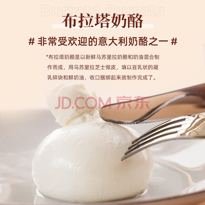 商品相册:柏札莱阿尔卑 布拉塔水牛奶酪270g (固形物不低于125g) 意大利原装进口 柏扎莱第