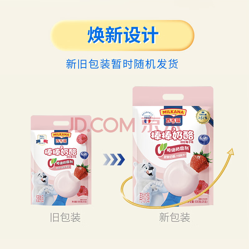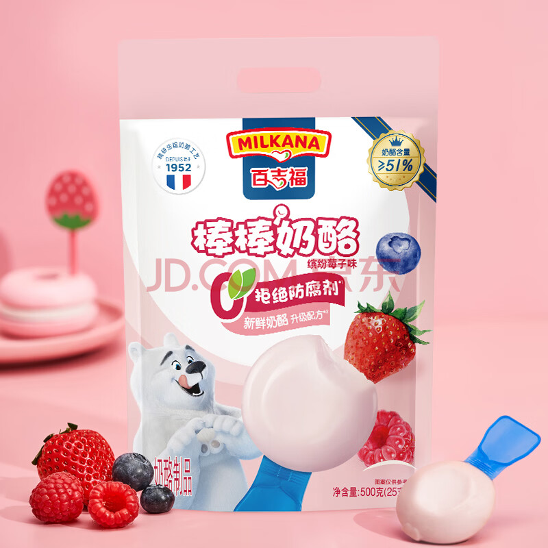 商品相册:百吉福(MILKANA) 棒棒奶酪低温儿童奶酪棒 缤纷莓子味 500g/25支装 第