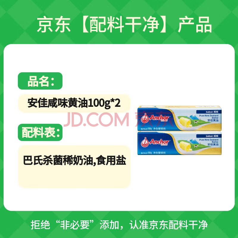 商品相册:安佳(Anchor)新西兰进口 动物黄油咸味有盐100g*2 烘焙原料西餐煎牛排第1张/共6