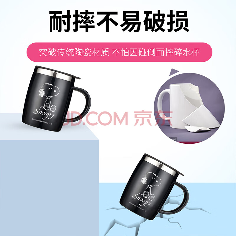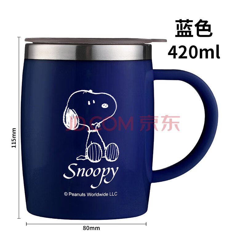 商品相册:史努比(SNOOPY)带手柄不锈钢办公保温杯水杯420ML可爱杯子情侣杯 DP-5002 蓝色第