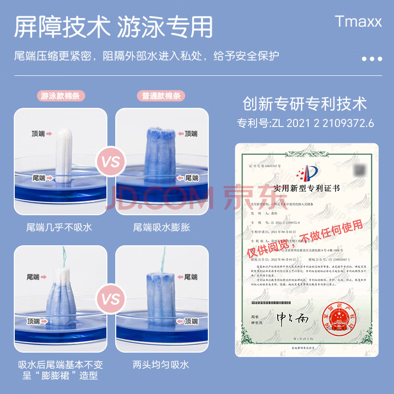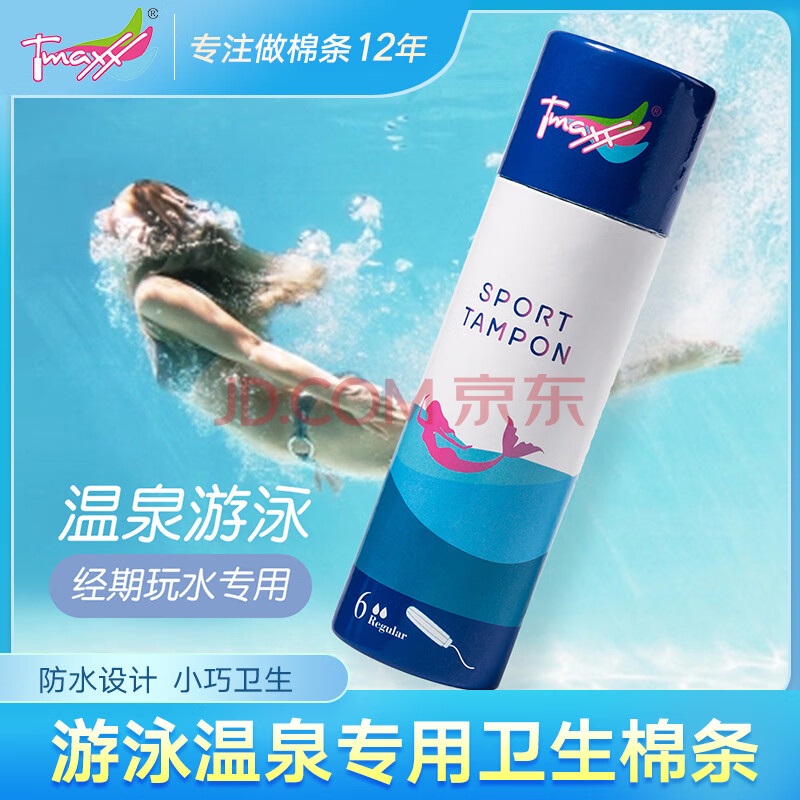 商品相册:Tmaxx卫生棉条游泳温泉内置卫生巾防水姨妈巾专利棉棒6支京东自营第1张/共7