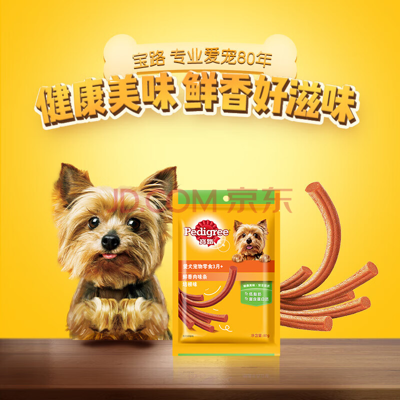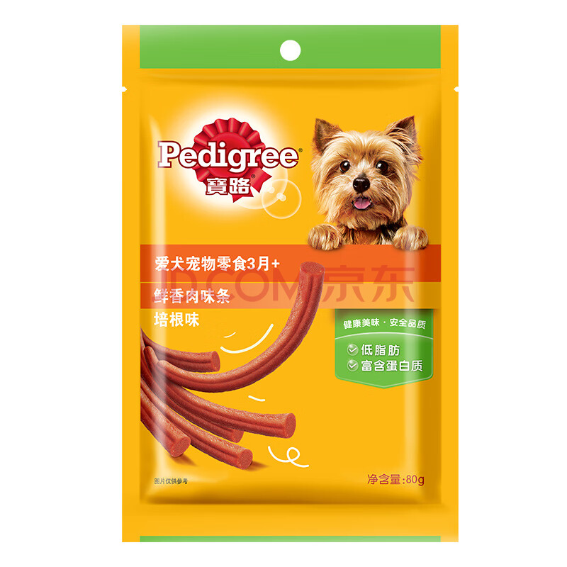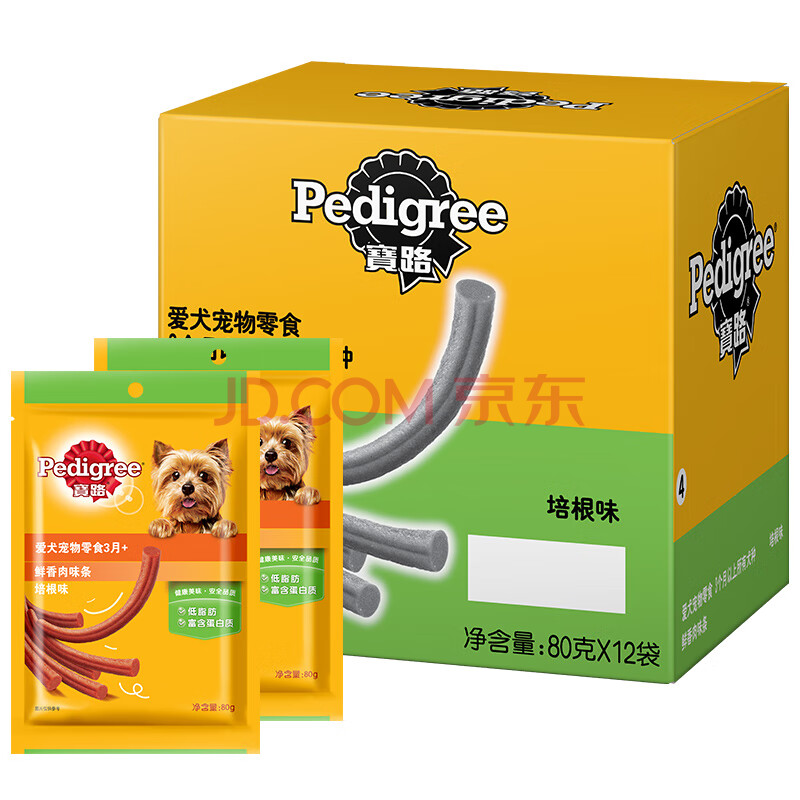 商品相册:宝路狗零食 鲜香肉条通用犬泰迪培根味肉条80g*12整盒装第