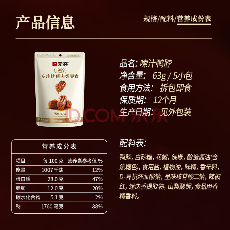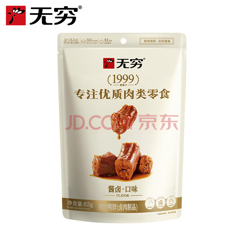 商品相册:无穷嗦汁鸭脖麻辣鸭脖零食即食卤味肉食香辣小零食 63g第