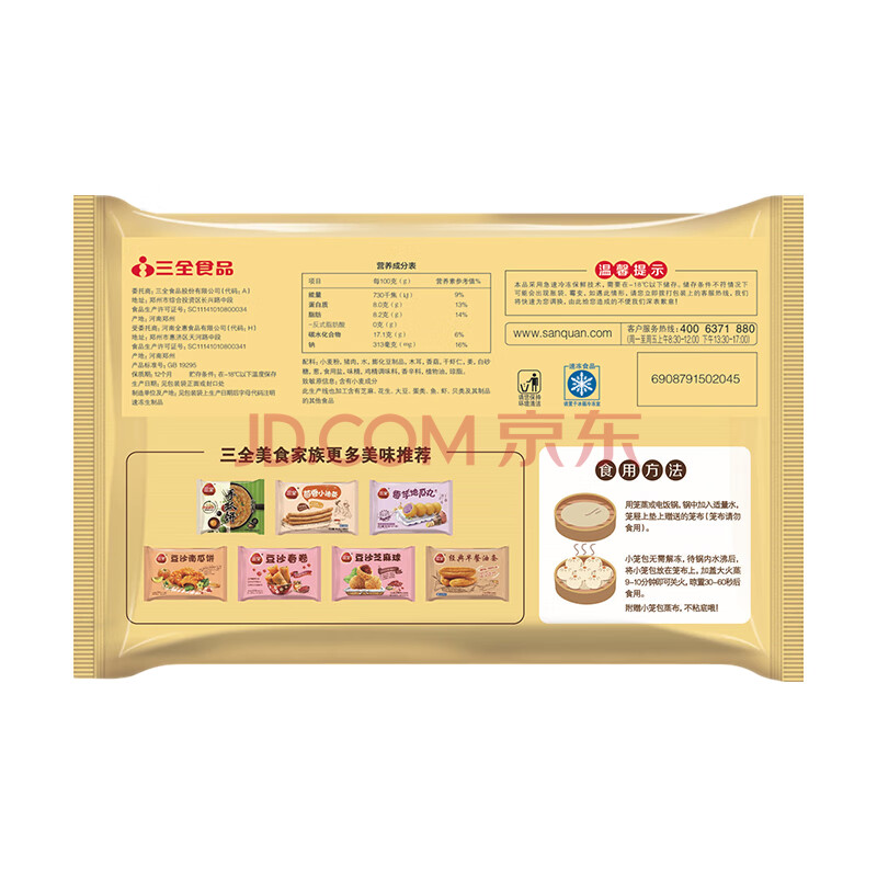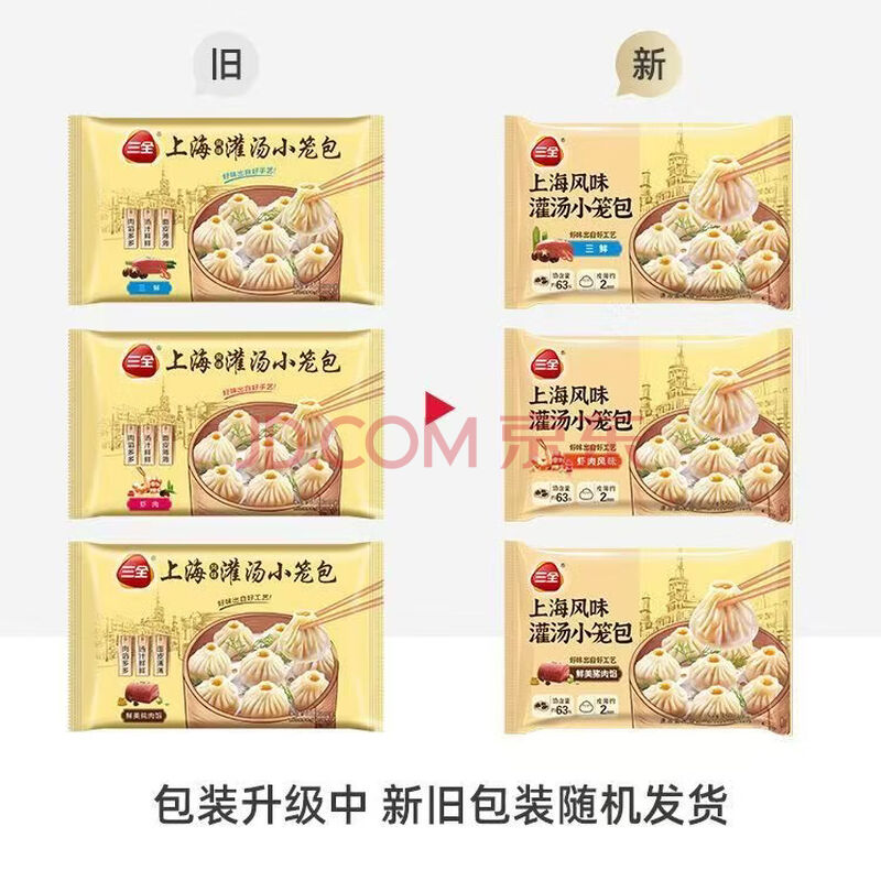 商品相册:三全上海灌汤小笼包子三鲜馅450g*2袋约36只早餐半成品早点第