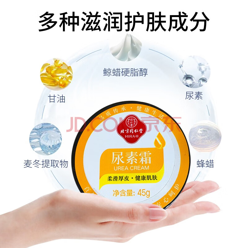 商品相册:同仁堂尿素霜45g/盒 柔滑手肘 足部厚皮 干裂肌肤 滋养保护保湿润肤 第