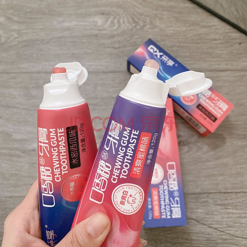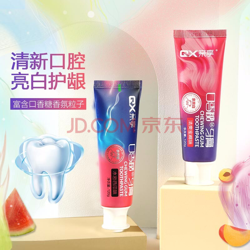 商品相册:亲享 口香糖味牙膏 2支装 清爽蜜桃味+水蜜西瓜味 清新口气第