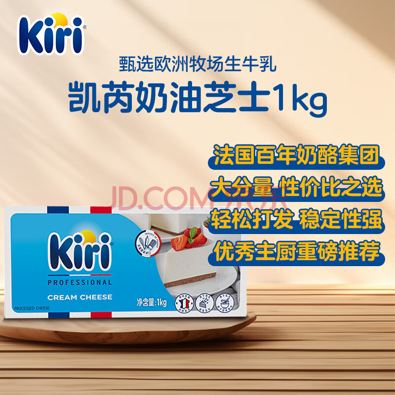 商品相册:KIRI凯芮法国进口烘焙奶油奶酪原味1kg 芝士 烘焙原料【热门商品】第1张/共6