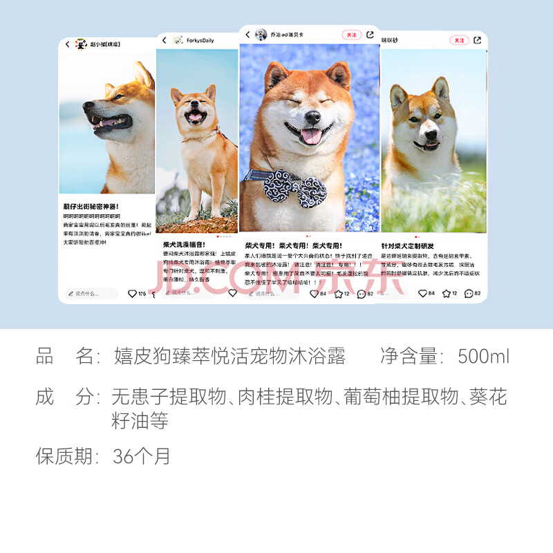 商品相册:嬉皮狗 柴犬专用狗狗沐浴露宠物香波浴液成幼犬通用除味洗澡液 500ml第