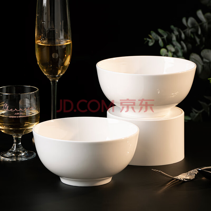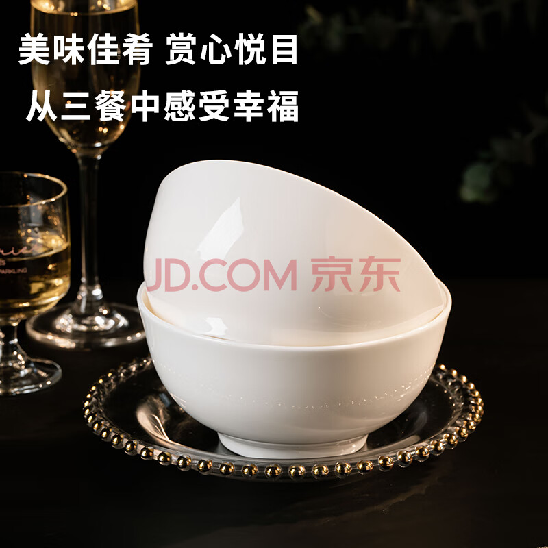 商品相册:浩雅高温釉下彩景德镇餐具家用6英寸面碗陶瓷碗米饭碗汤碗2只装纯白第1张/共5