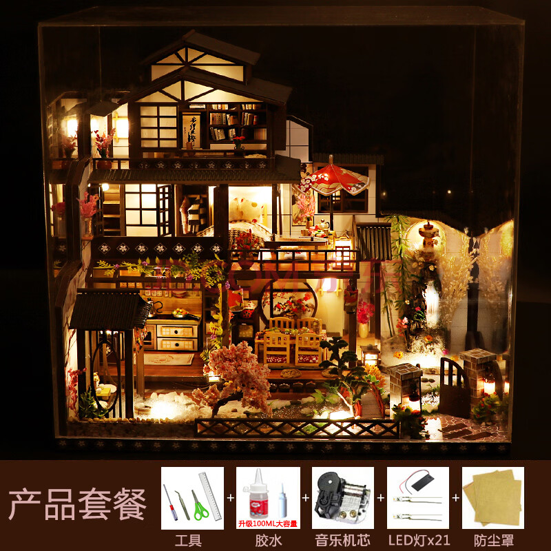 商品相册:我の屋日式DIY手工小屋古都望月大型房子玩具八音盒小房子男女生日礼物第