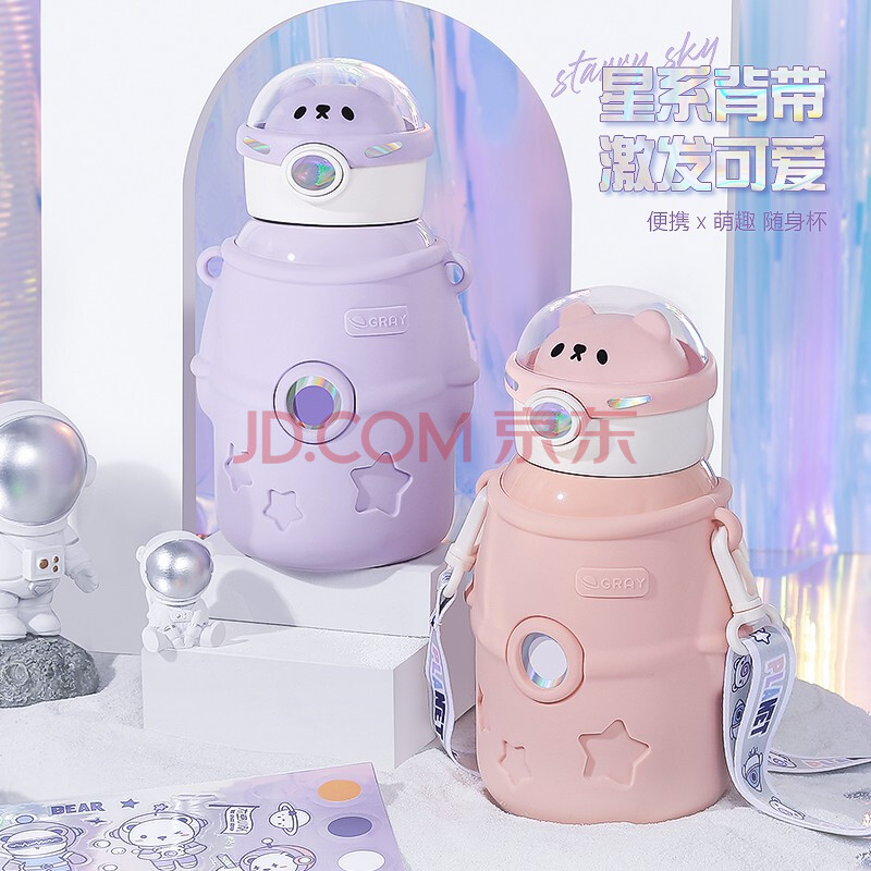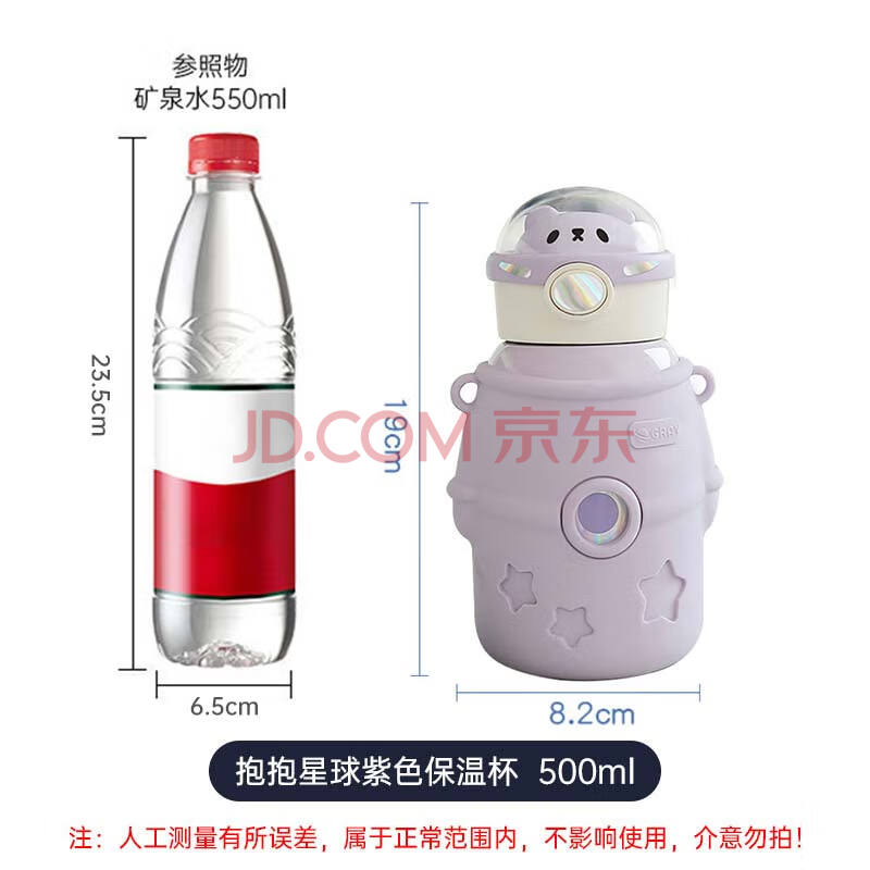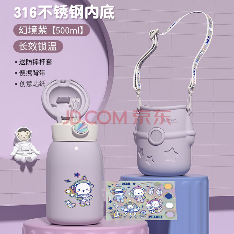 商品相册:几物森林 儿童保温杯大容量男女儿童水杯316不锈钢底保冷大肚杯 紫色500ml第