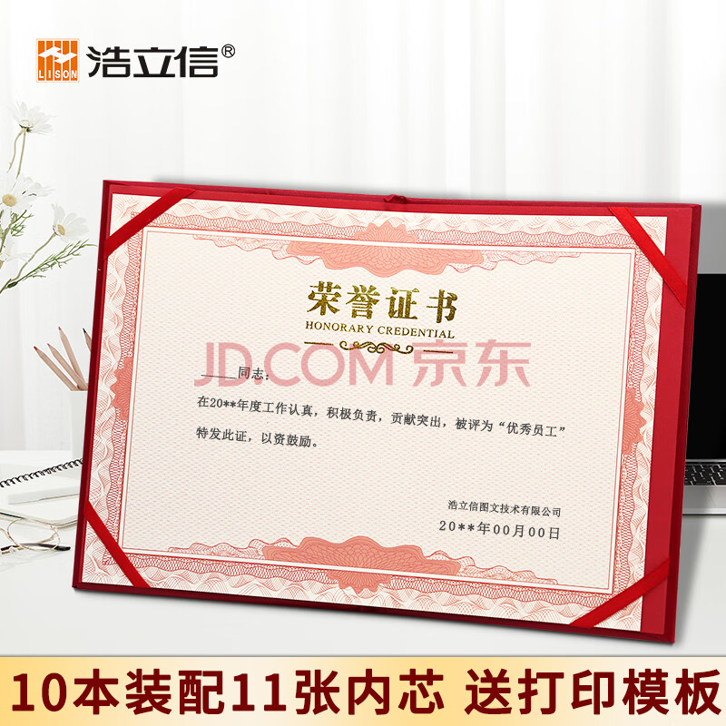 商品相册:浩立信(LISON)10本装8K荣誉证书外壳配11张内芯精致烫金颁奖状表彰典礼场合适用 5908第1张/共7