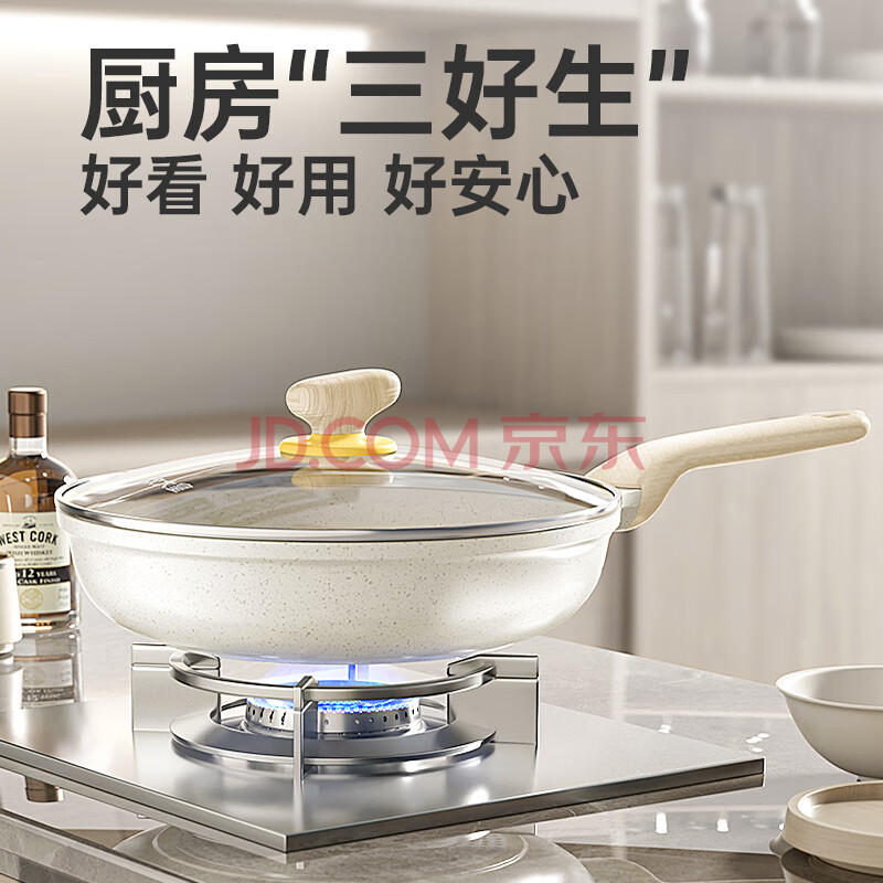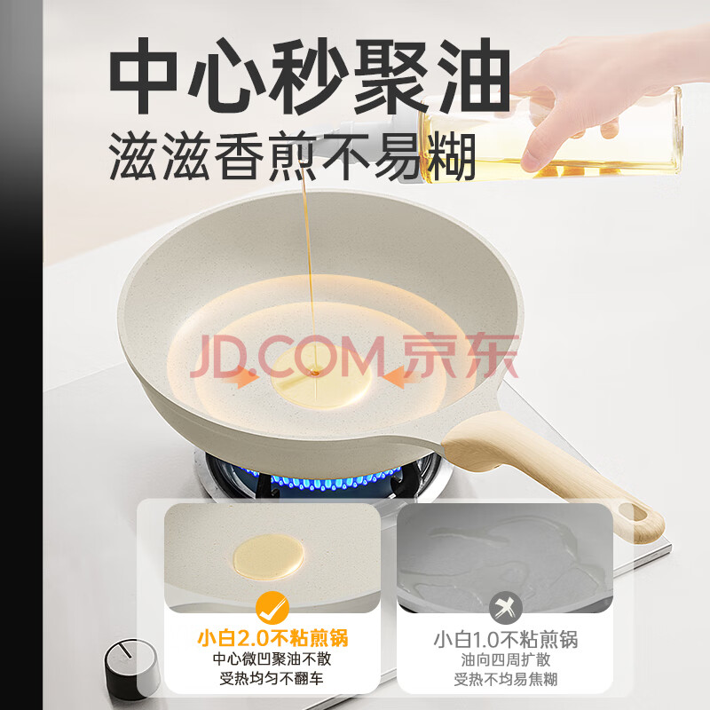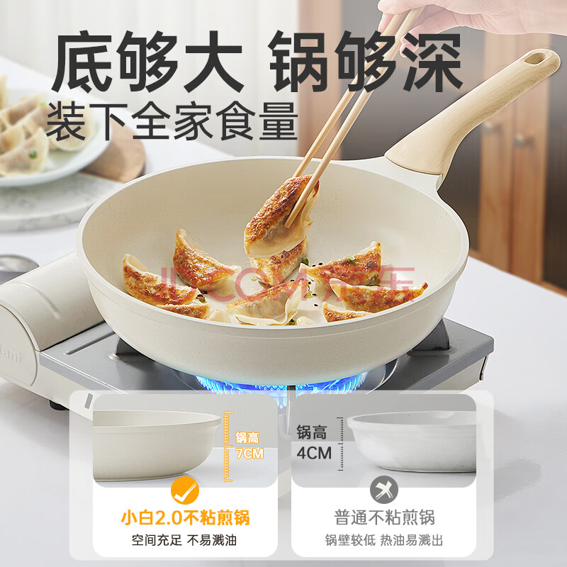 商品相册:炊大皇煎锅平底锅 聚油不凸底麦饭石色不粘锅多功能易洁少油烟煎锅24cm第
