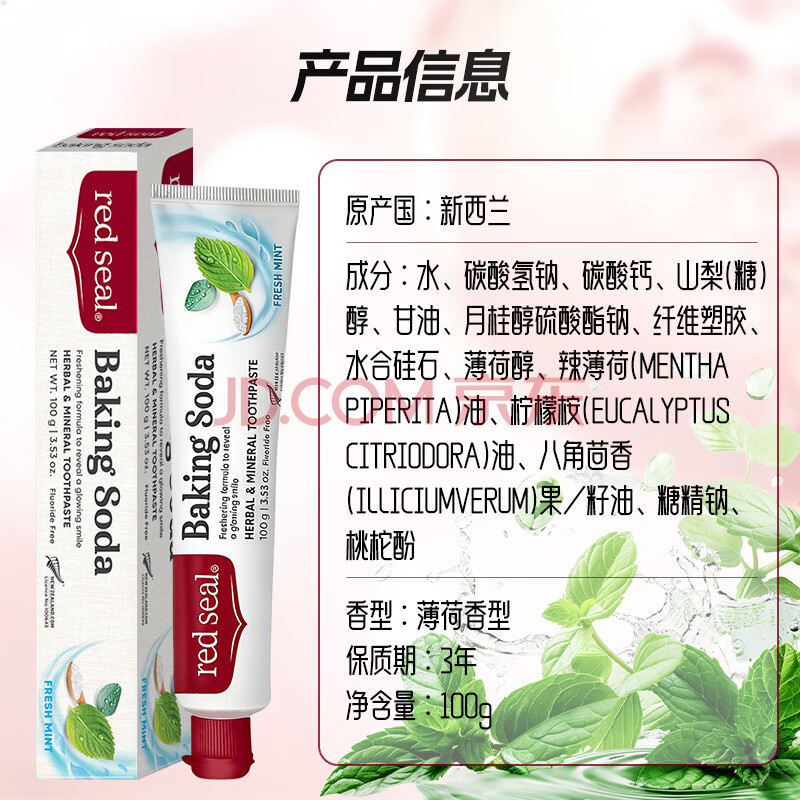 商品相册:红印(Red seal)小苏打牙膏100g+牙刷套装 健康无氟清新口气淡化牙渍防蛀第