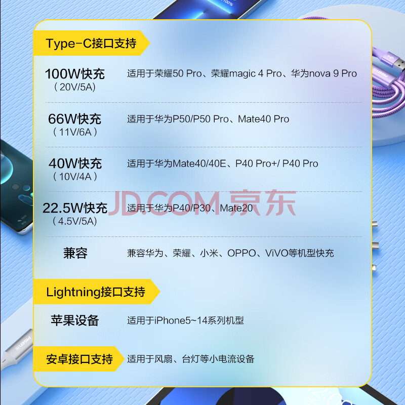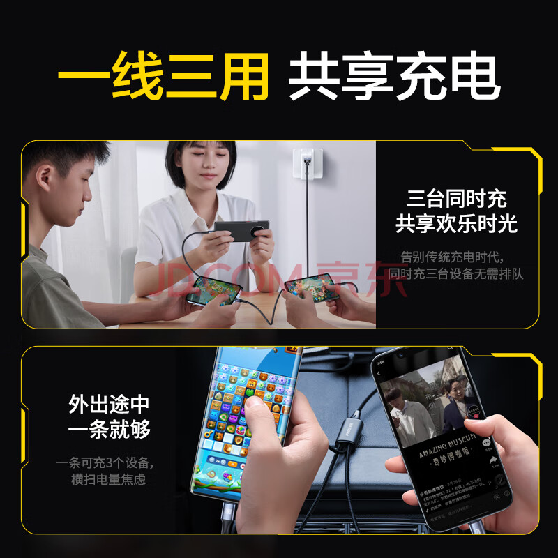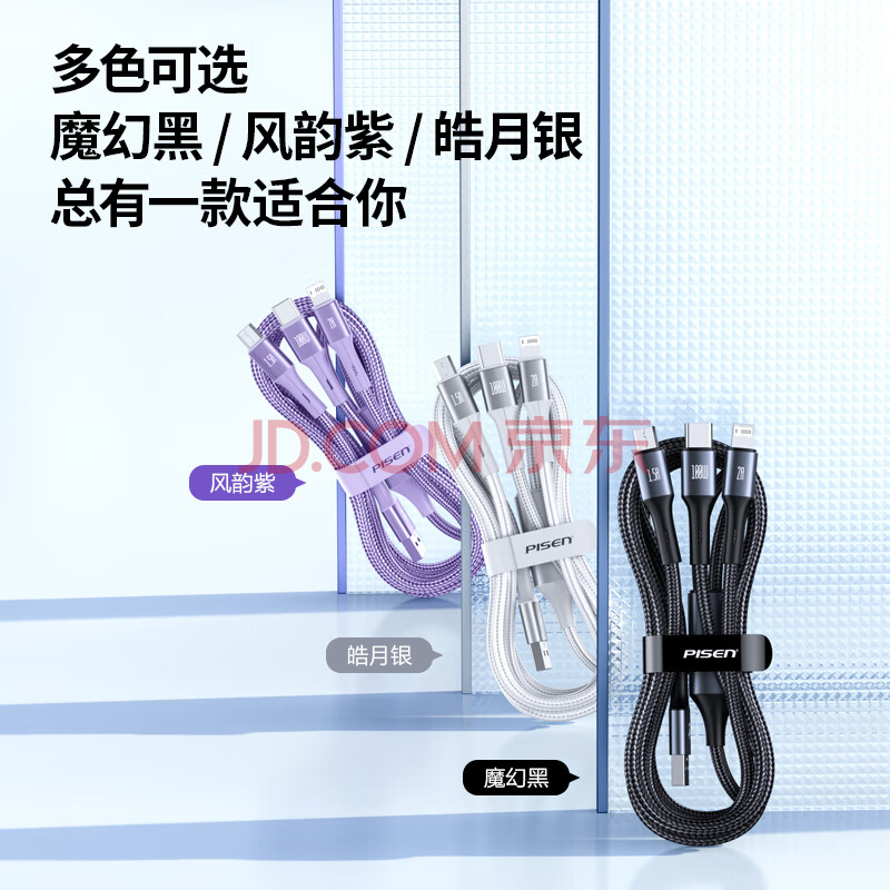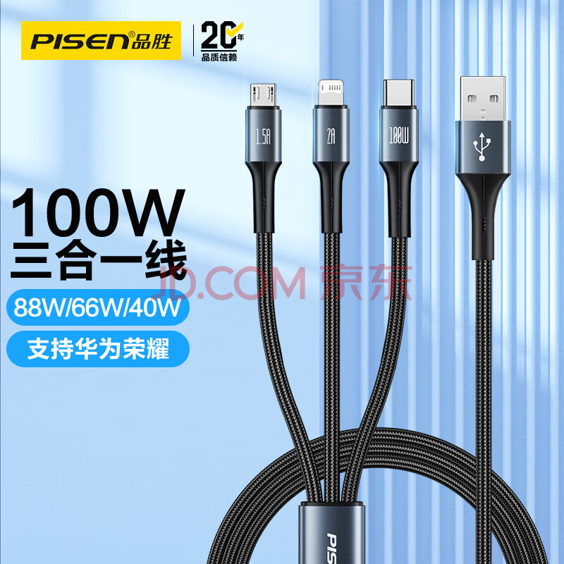 商品相册:品胜数据线三合一充电器线6a/5a快充100W/66W一拖三适用苹果14/13华为mate80pro/pura7060小米手机车载第