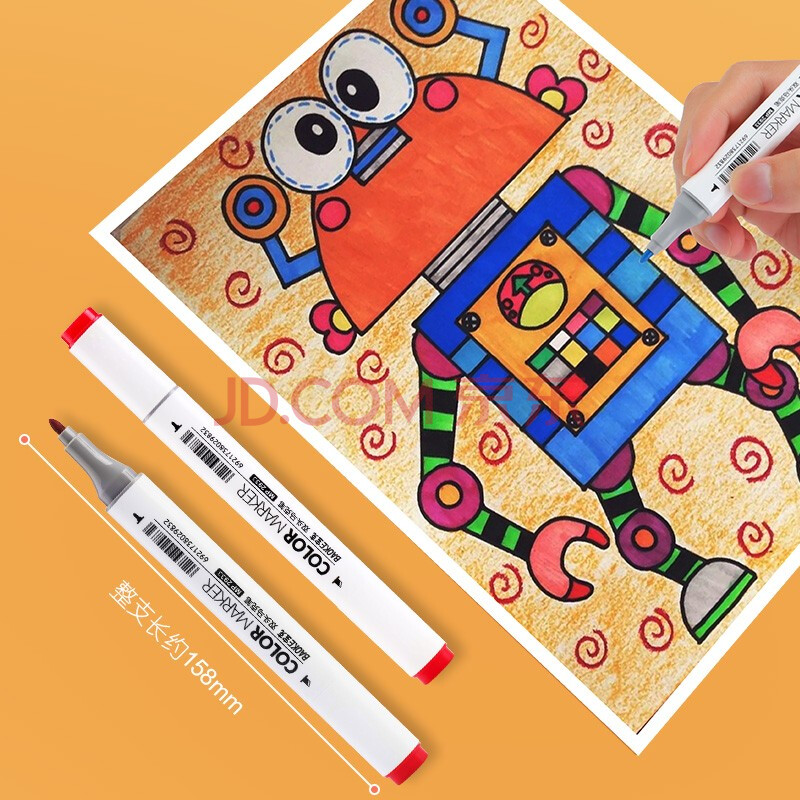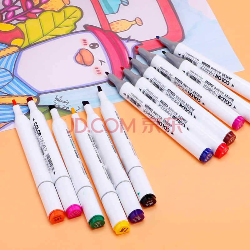 商品相册:宝克(BAOKE)MP2933-24双头马克笔三角笔杆酒精油性学生美术绘画儿童涂鸦设计笔24色装水彩笔美育第