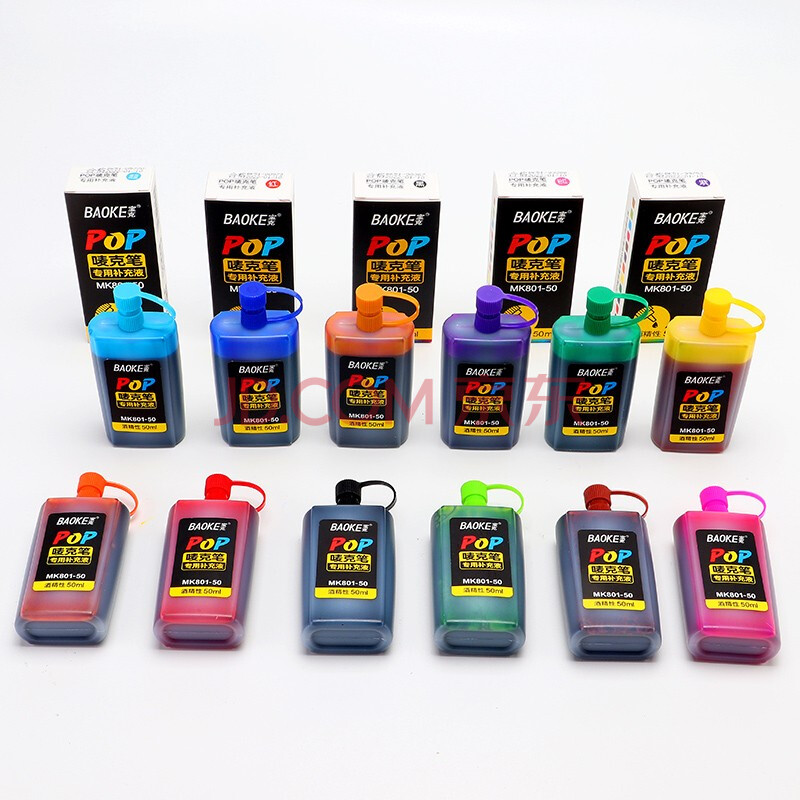 商品相册:宝克(BAOKE)MK801-50 POP唛克笔专用补充液 墨水粉红色 50ml 单瓶装第