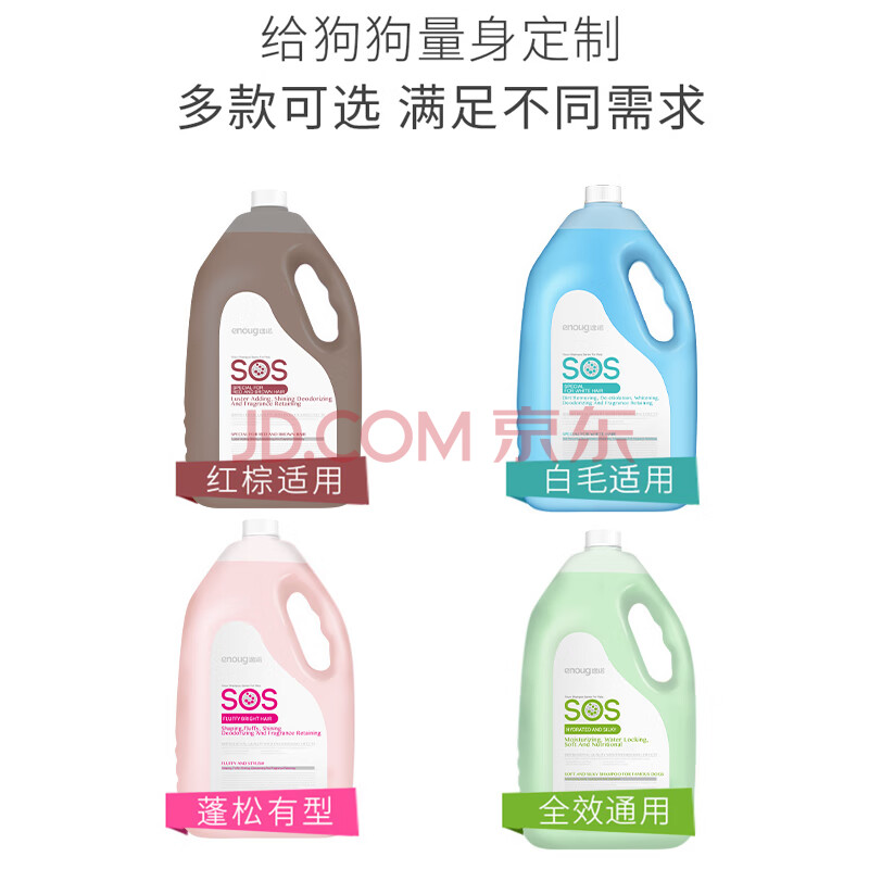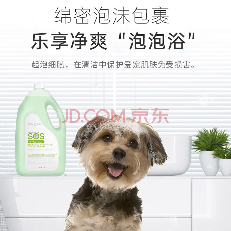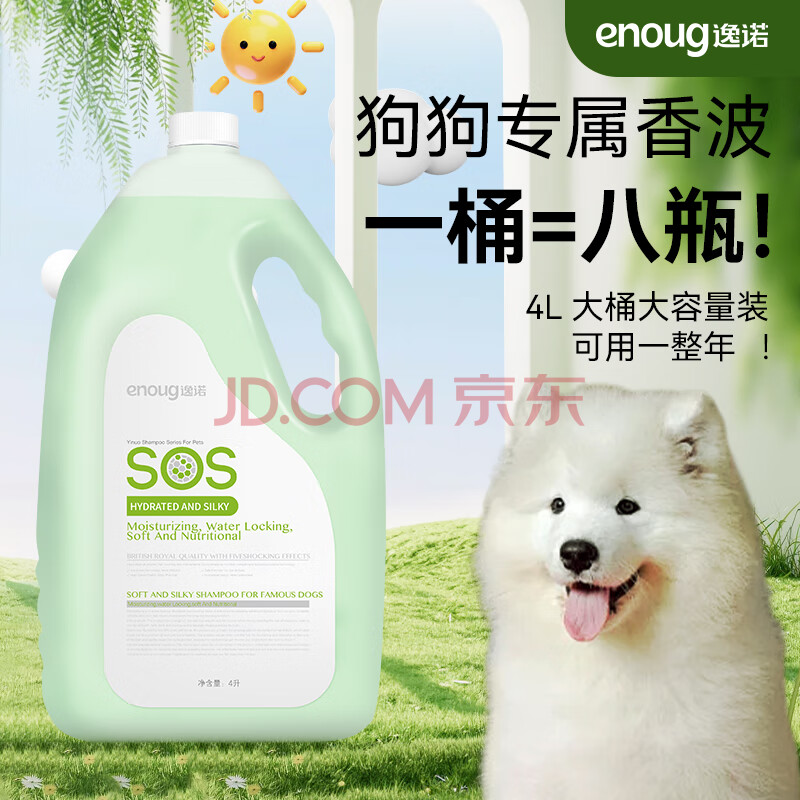 商品相册:逸诺(enoug)SOS宠物狗沐浴露浴液香波大桶装洗澡除臭(带压泵)水润柔顺款4L第