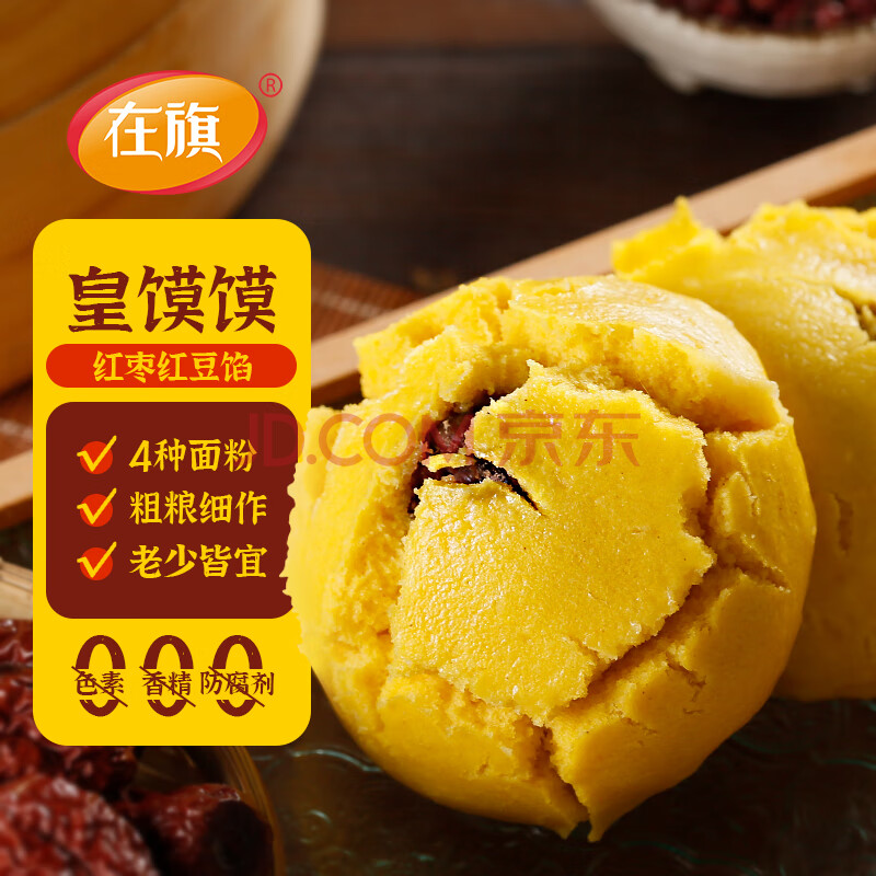 商品相册:在旗皇馍馍640g 8个 枣泥豆沙馅早餐糜子面黄馍馍杂粮食品速食半成品第