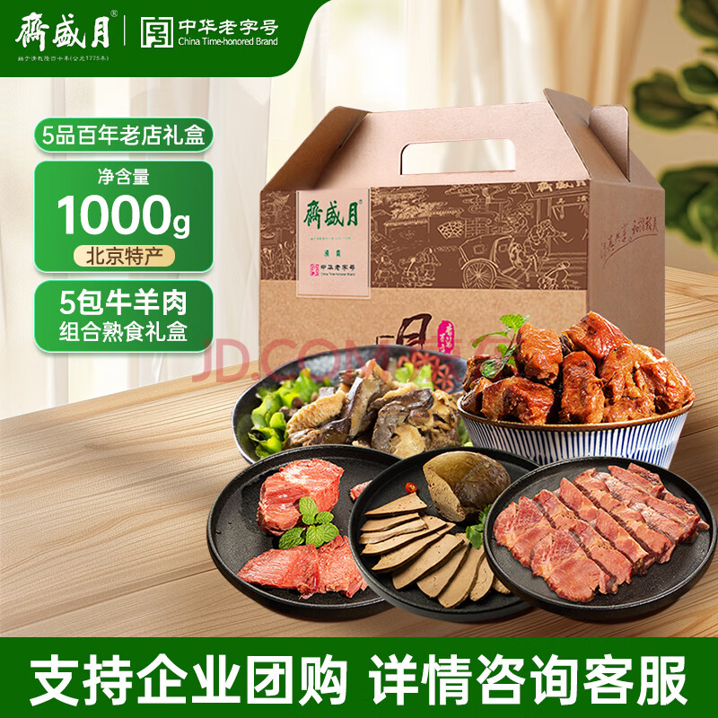 商品相册:月盛斋纯肉熟食礼盒老字号清真牛羊肉特产熟食礼盒5品百年老店2斤送长辈第