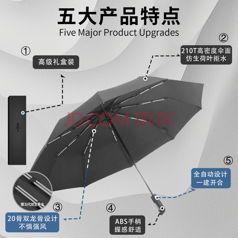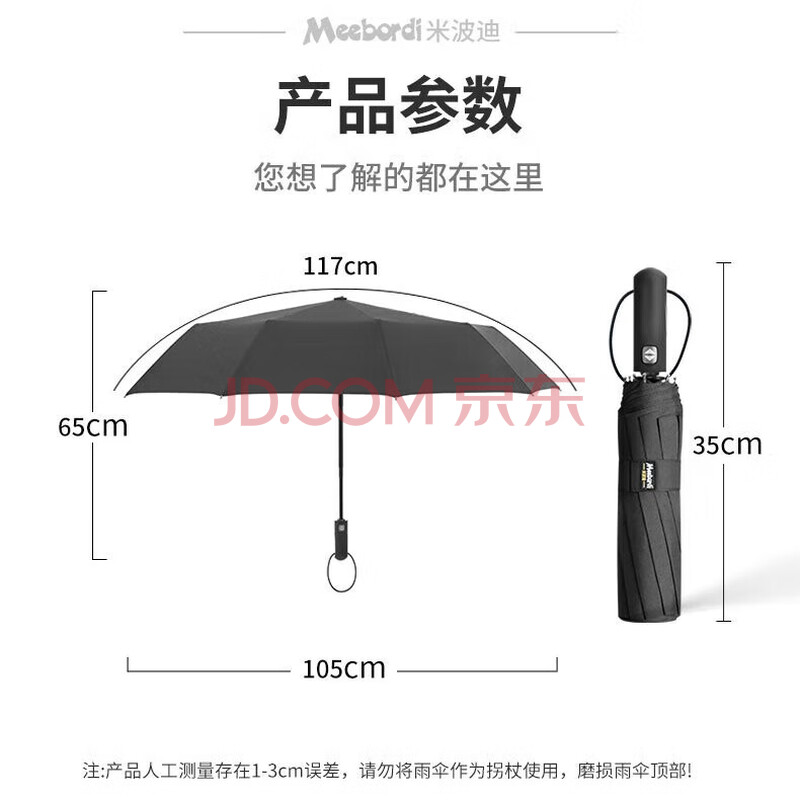 商品相册:米波迪(Meebordi)雨伞全自动大号遮阳伞三折叠便携高端礼盒伞商务折叠风暴伞定制第