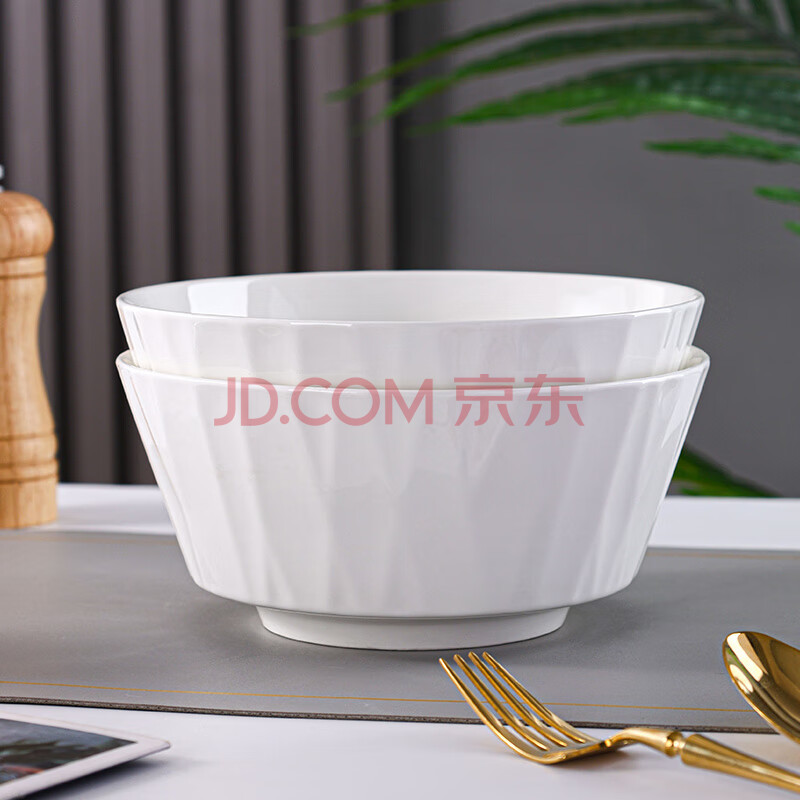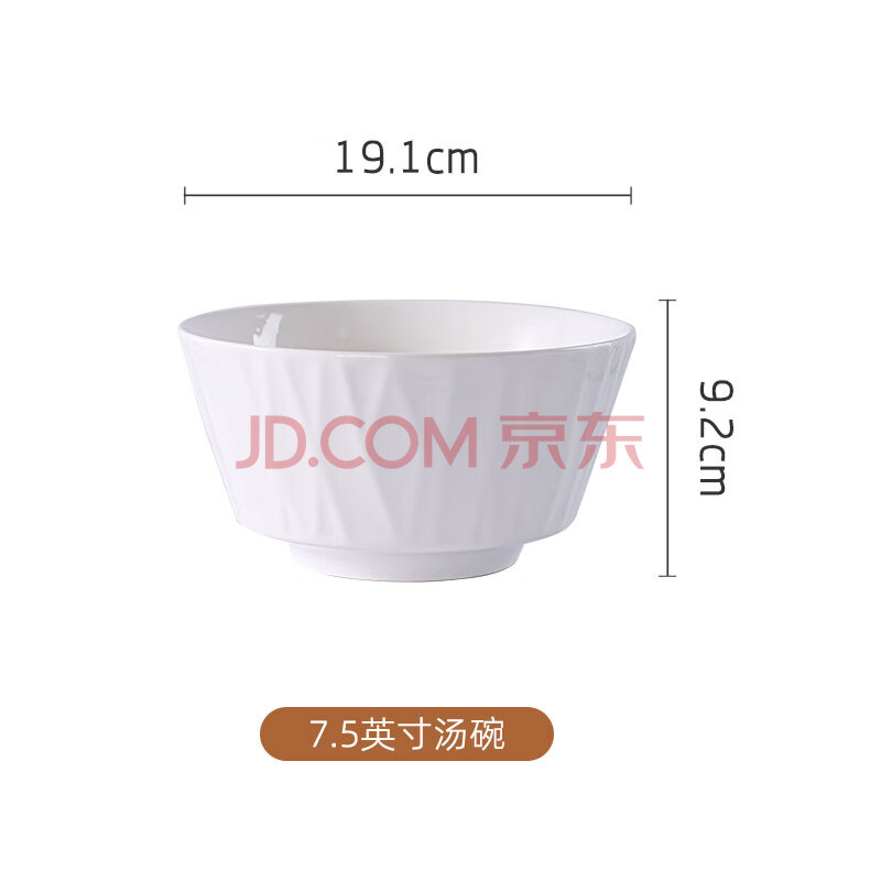 商品相册:洁雅杰陶瓷汤碗大号家用大面碗釉下彩7.5英寸大碗汤盆2只装 白色琉璃第