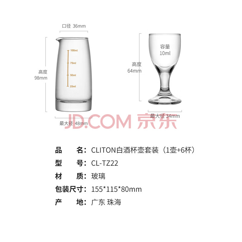 商品相册:CLITON白酒杯分酒器100ml酒具套装茅台一口小酒杯刻度分酒壶酒盅1壶6杯第
