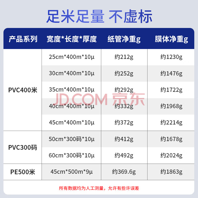 商品相册:宜之选PVC保鲜膜超大卷商用一次性30CMX400M生鲜食品蔬果搬家打包缠绕膜第