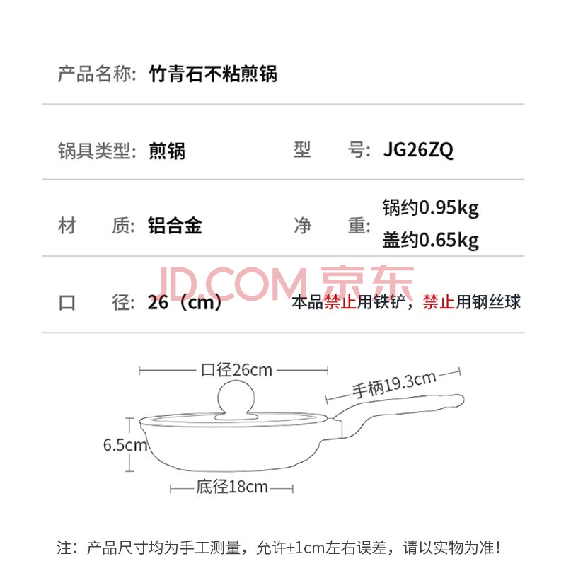 商品相册:炊大皇平底锅不粘锅多功能煎锅26cm电磁炉通用竹青石JG26ZQ第
