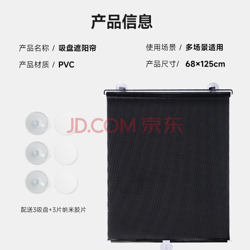 商品相册:富居免打孔窗帘自由伸缩防晒遮光隔热卷帘 吸盘式68*125cm波点第