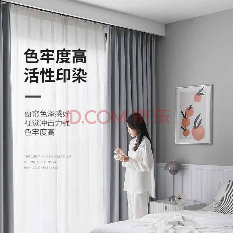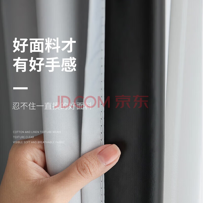 商品相册:铭聚布艺(MINGJU) 窗帘 全遮光窗帘成品窗帘布遮阳帘 涤塔夫浅灰挂钩式2.0*2.2单片第