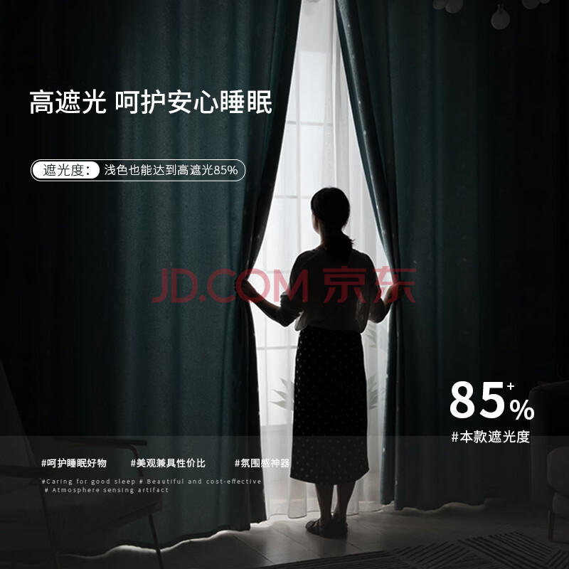 商品相册:阿黎客厅卧室阳台提花遮阳光防晒窗帘 挂钩式1.8米宽*2.4米高 单片装第