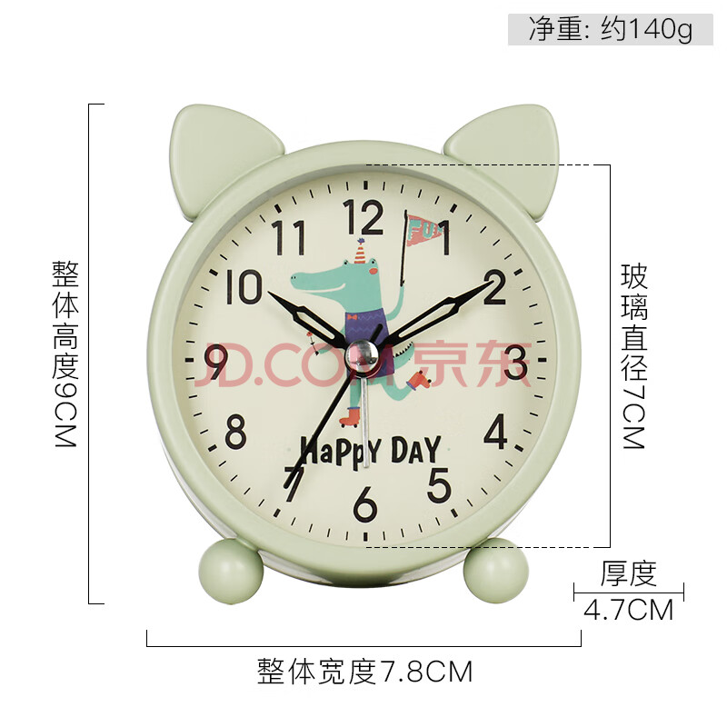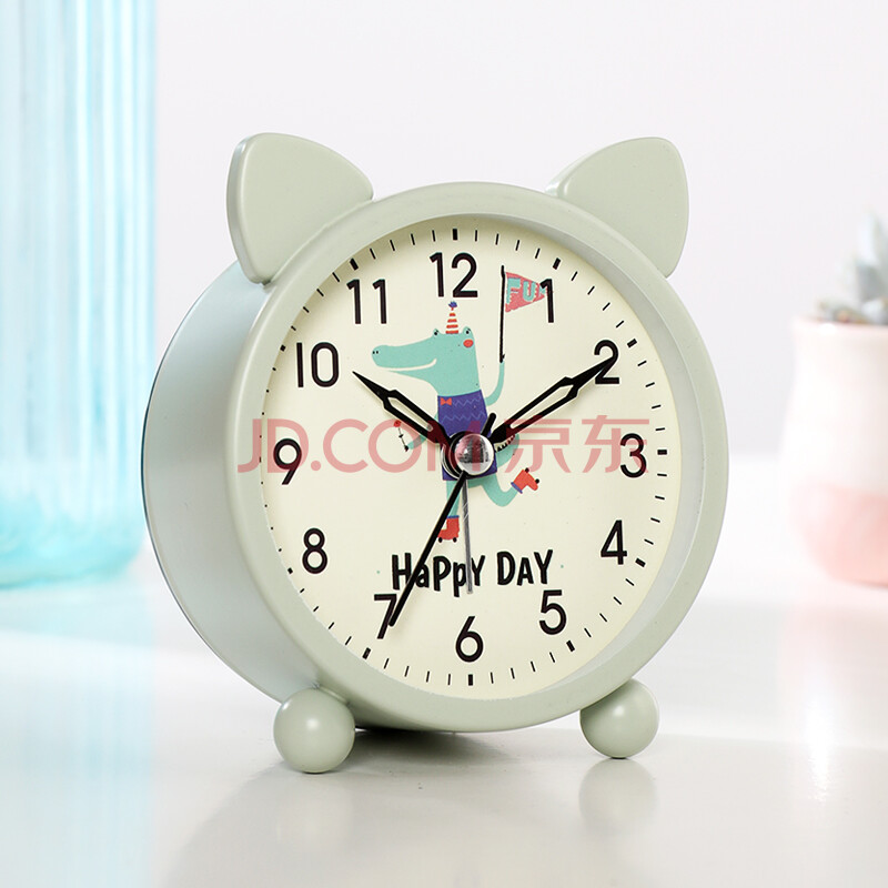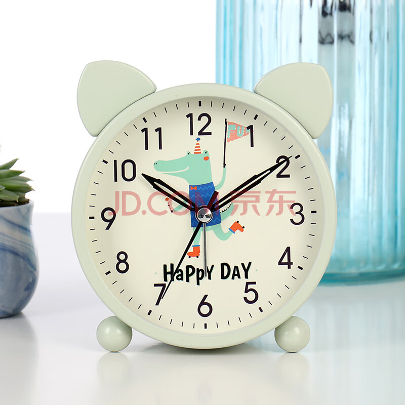 商品相册:汉时(Hense)儿童小闹钟学生专用起床神器卡通桌面时钟懒人床头闹铃HA14绿3寸开学季第