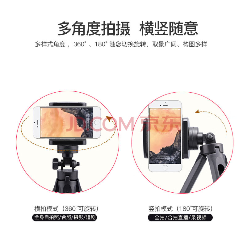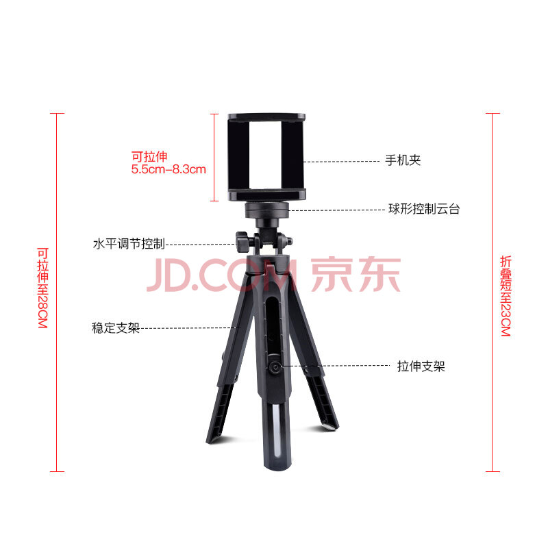 商品相册:孜泰 手机支架桌面直播支架相机微单摄像机架落地三脚架自拍架【可伸缩一体便携360度旋转】黑色第