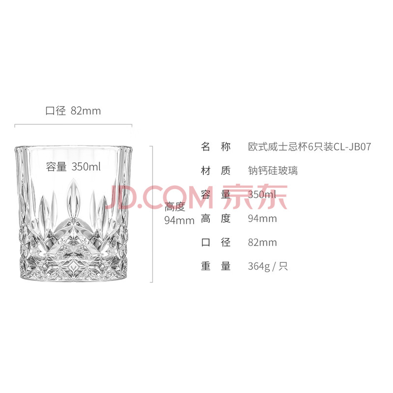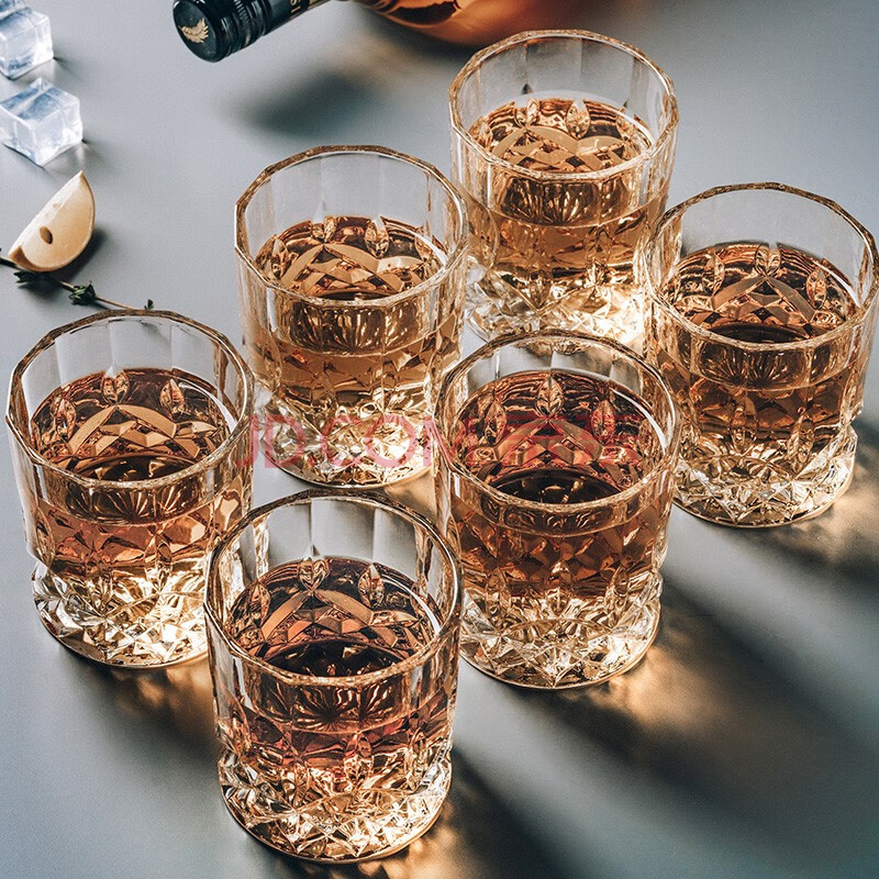商品相册:CLITON玻璃威士忌酒杯加厚雕花欧式烈酒杯洋酒杯家用水杯玻璃杯套装6只第