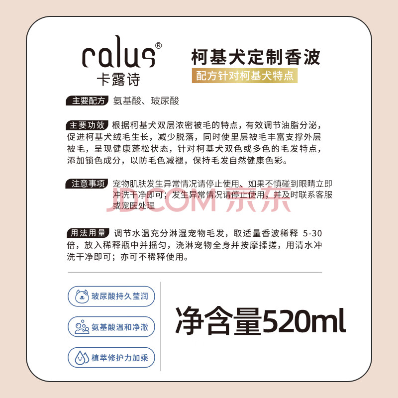 商品相册:卡露诗(calus)宠物狗狗沐浴露成幼犬通用除臭洗澡液香波柯基犬专用定制520ml第