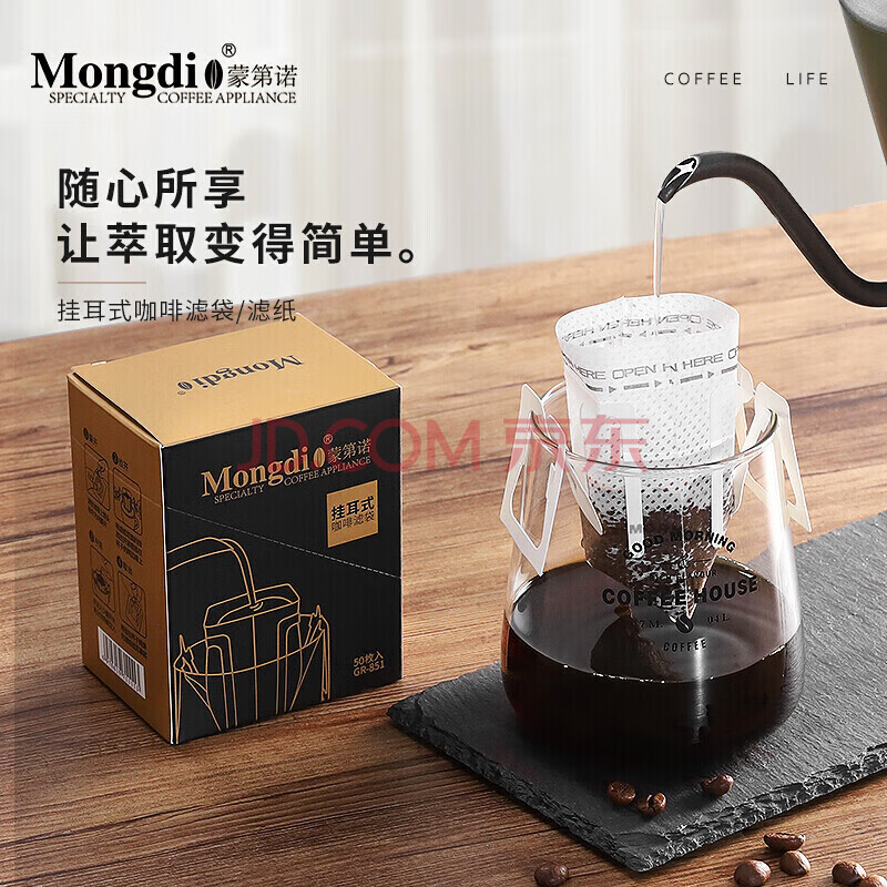 商品相册:Mongdio挂耳滤纸日本进口无纺布便携式手冲滤杯滴漏式手冲咖啡滤纸50片第