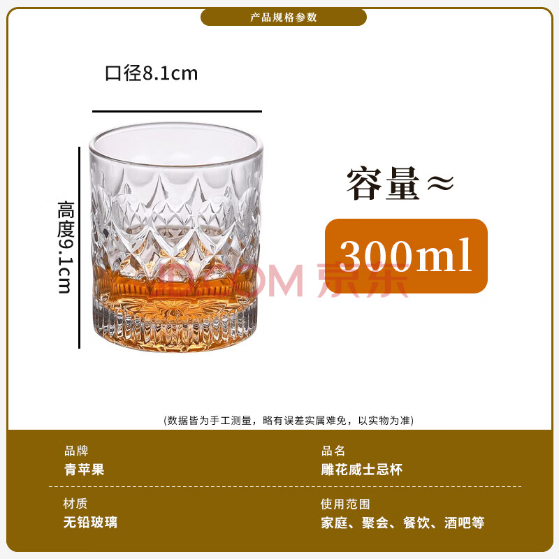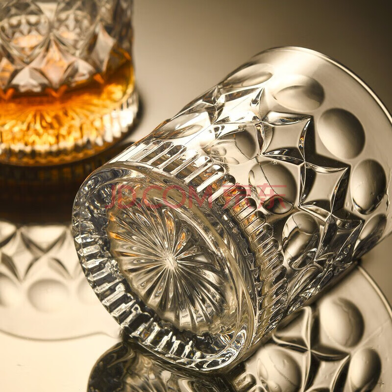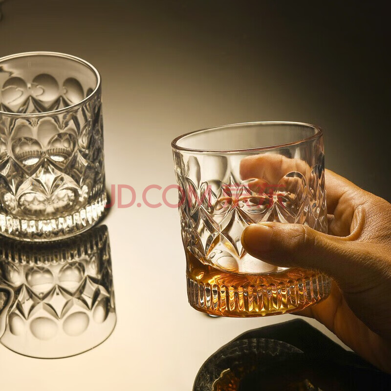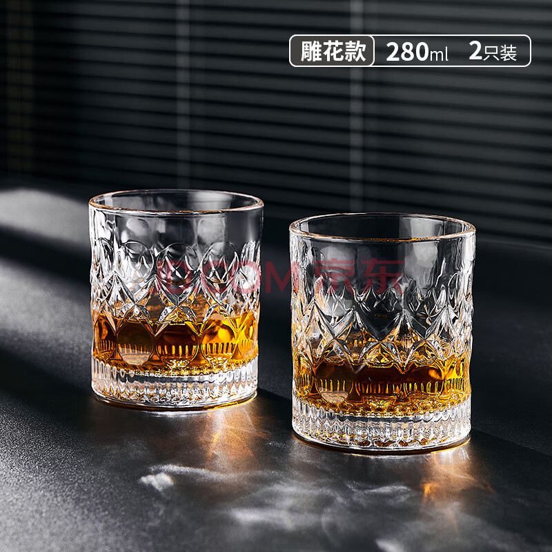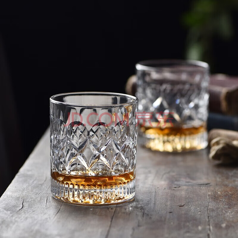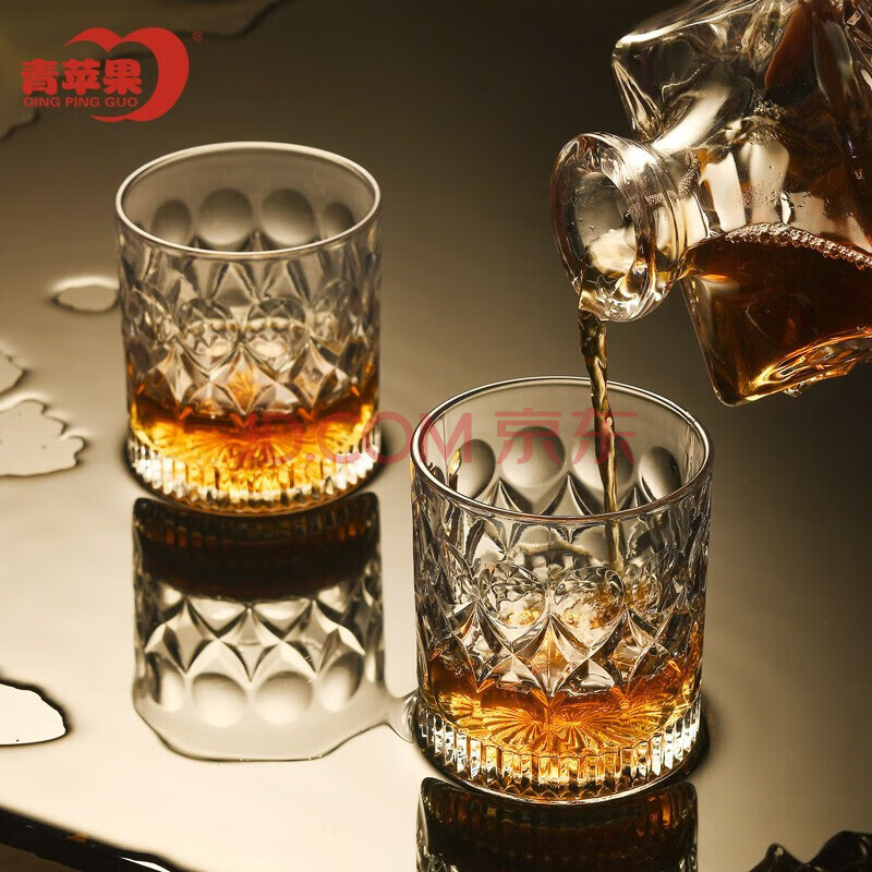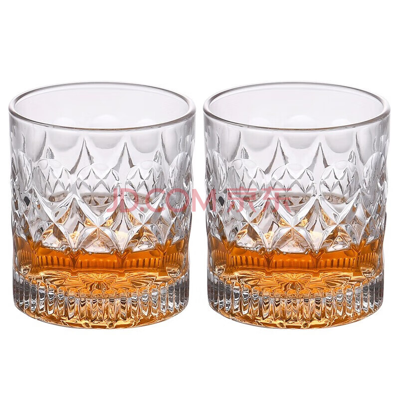 商品相册:青苹果雕花玻璃威士忌洋酒杯280ml两只 轻奢白酒杯啤酒KTV会所家用第