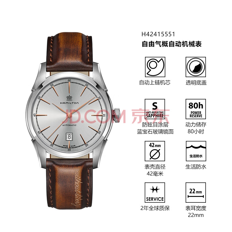 商品相册:汉米尔顿(Hamilton)经典自由气概42银盘皮带全自动机械表男瑞士手表商务表男士礼物第