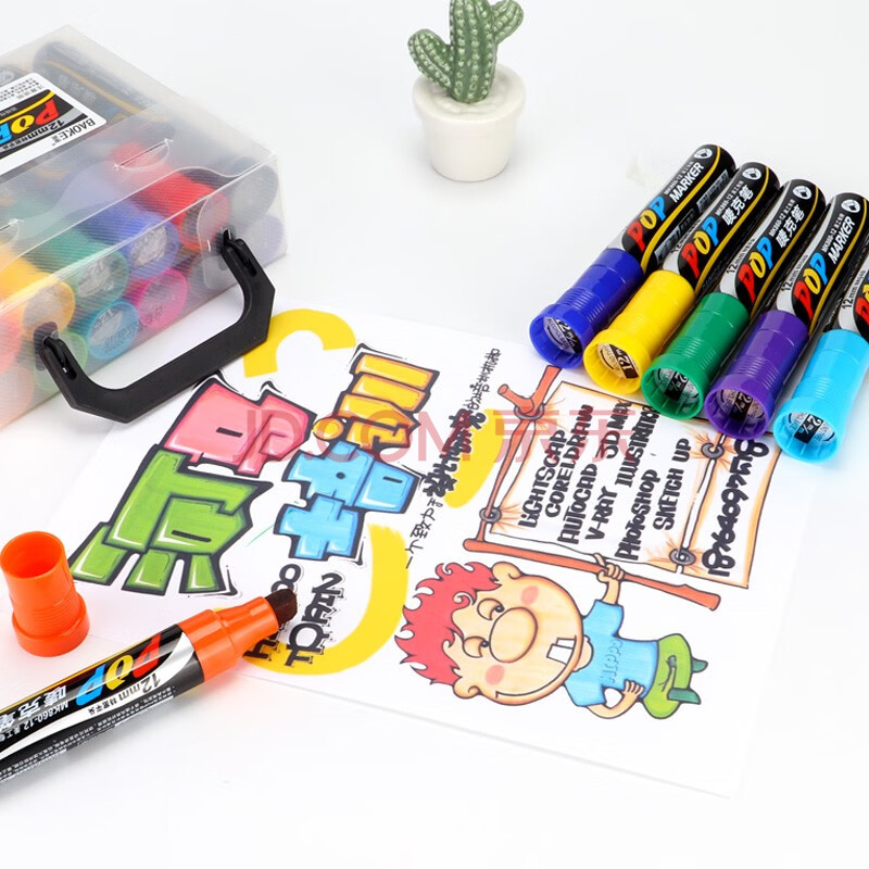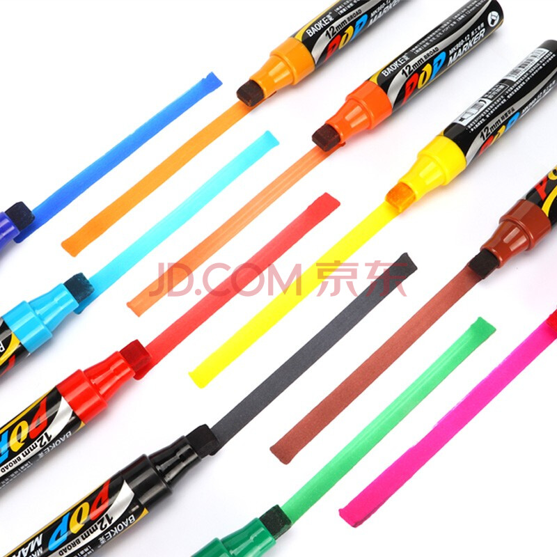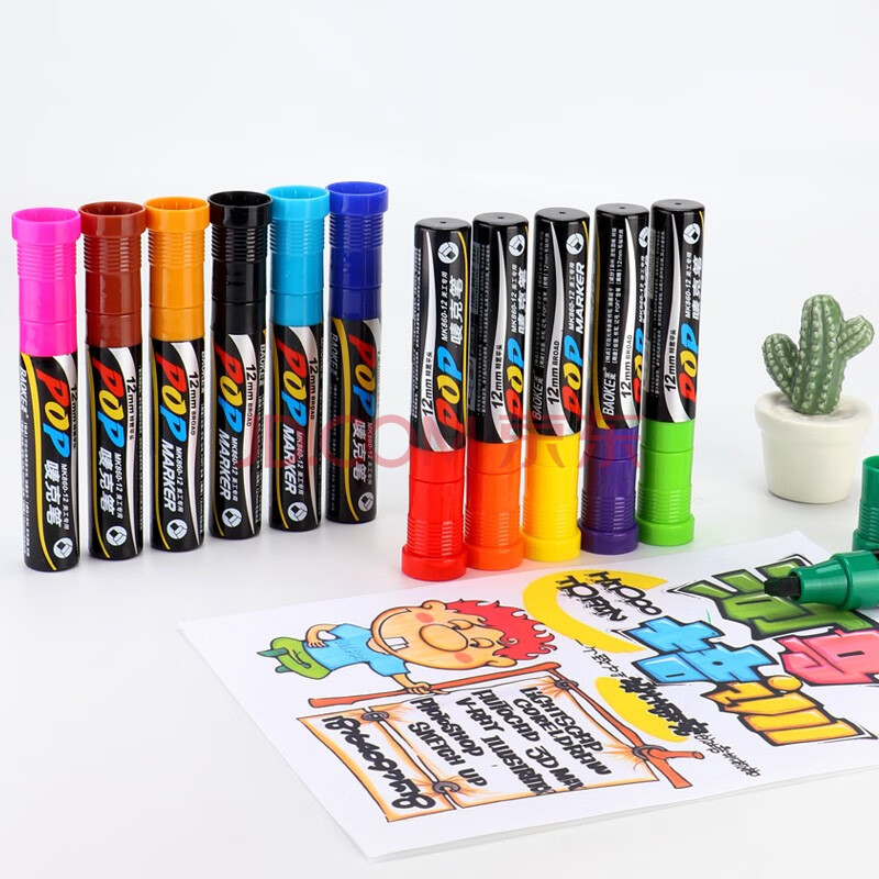 商品相册:宝克(BAOKE)MK860-12 12色POP唛克笔套装 海报广告画笔 彩色马克笔记号笔 12mm第