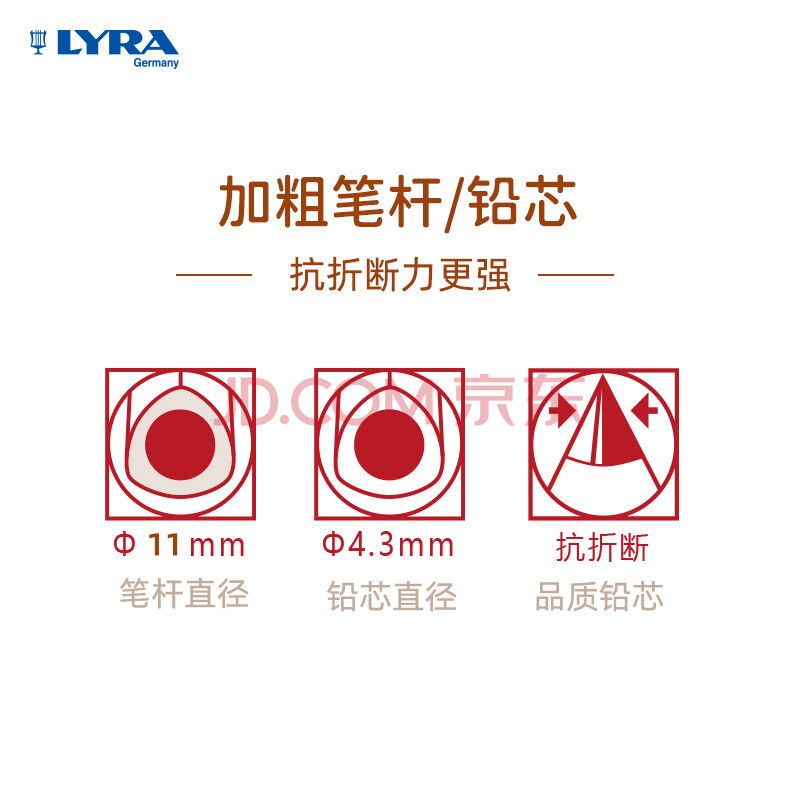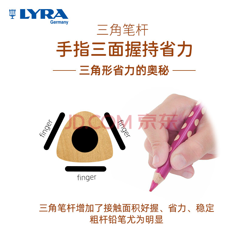 商品相册:LYRA德国艺雅粗杆B洞洞铅笔 小学生考试涂卡练字铅笔 儿童矫姿正姿三角杆铅笔 粉色杆单支L1873361第